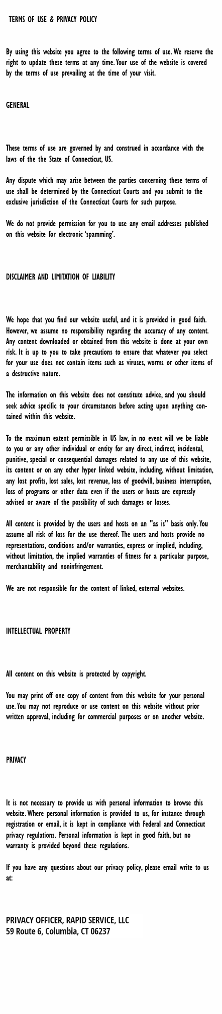 Schedule a Service Now!When you need a plumber, electrician or boiler technician in Voluntown, choose Rapid Service and experience their First Class customer care. Providing a red carpet service since 1987.